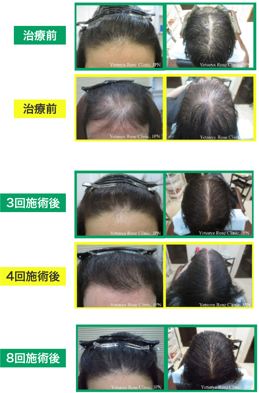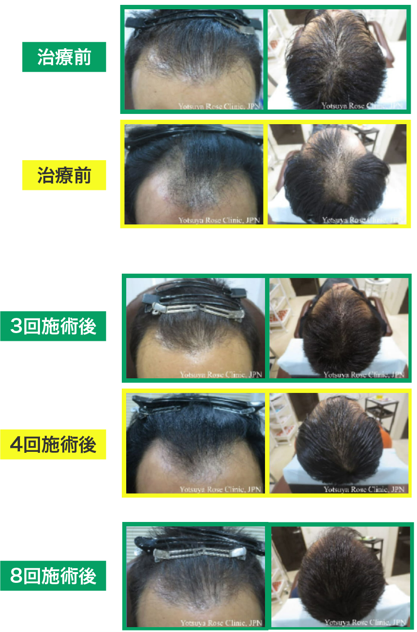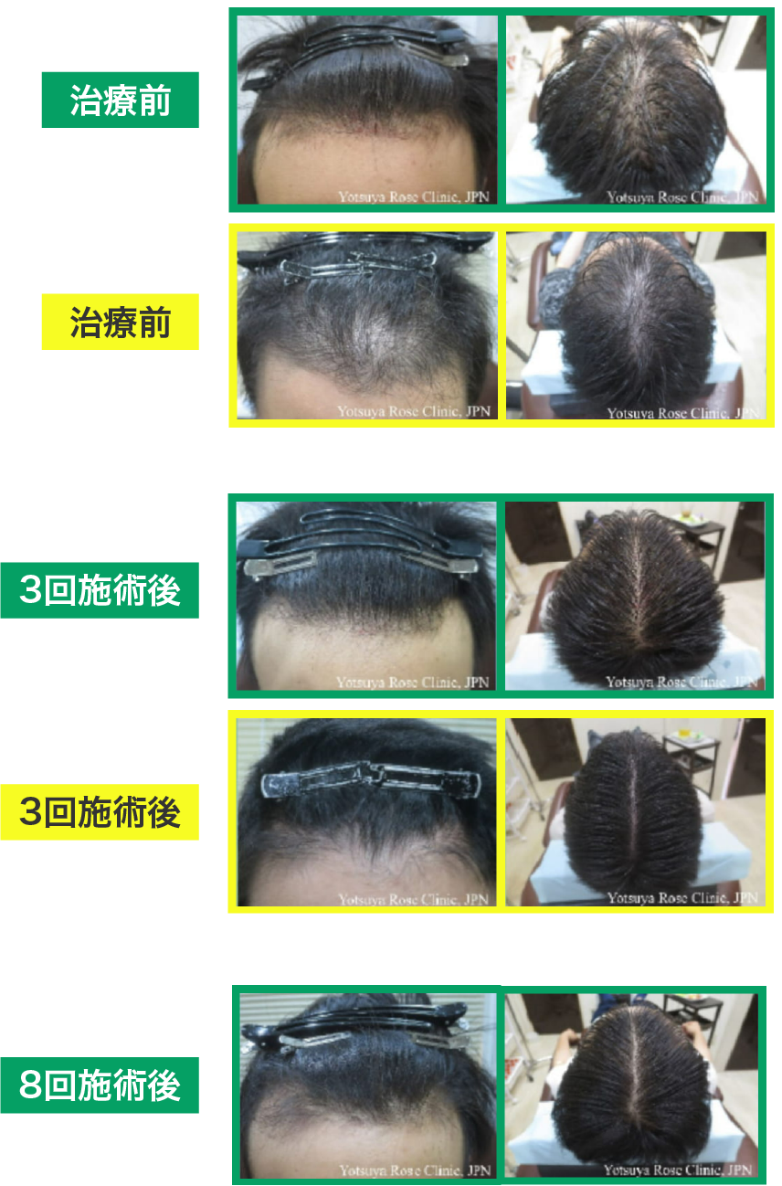 早く発毛してくれば、生えた毛髪がより長く太く成長し、またその間に発毛する毛量も増えるので、薄毛治療に対して患者により満足度は高くなると考えています。